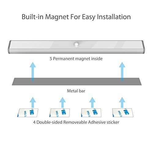 Easy to use and install: The product is wireless, so there is no need for any screws or tools, no plugging-in,and no electric wires required. Because of the magnet residing inside, you can directly attach the product to any iron surface, OR stick the iron material attached to the LED light to a non-iron surface using 3M adhesive stickers. When you need to charge it or change its location, you can take it off anytime.