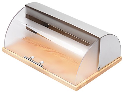 Product Description Bread Box with Stainless Steel back, Wood bottom and Acrylic easy to open lid with handle 0