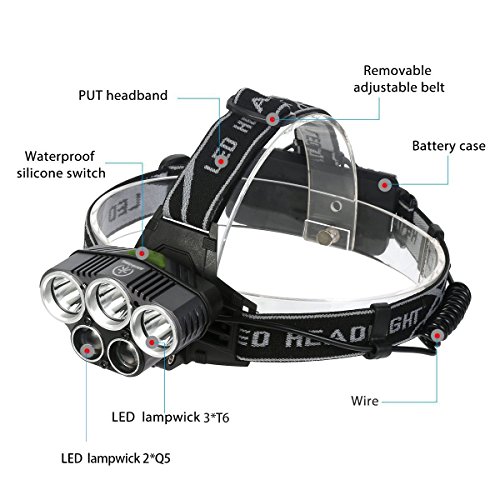 - ★SUPER BRIGHT- A set of 5 high performance CREE XM-L T6 LED Bulbs deliver 6000 lumens to give you the brightest illumination, Irradiation range is 2.5 times that of the ordinary Led Headlamps. Powerful energy, long range and big area light brightness.