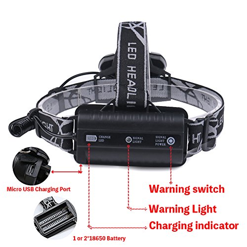 Headlamp LED Headlight, Justdoing Waterproof Super Bright Headlamp Flashlight Rechargeable, 6 Modes Headlights, CREE 3T6 Led Light +2Q5 for Camping, Running, Hiking and Reading