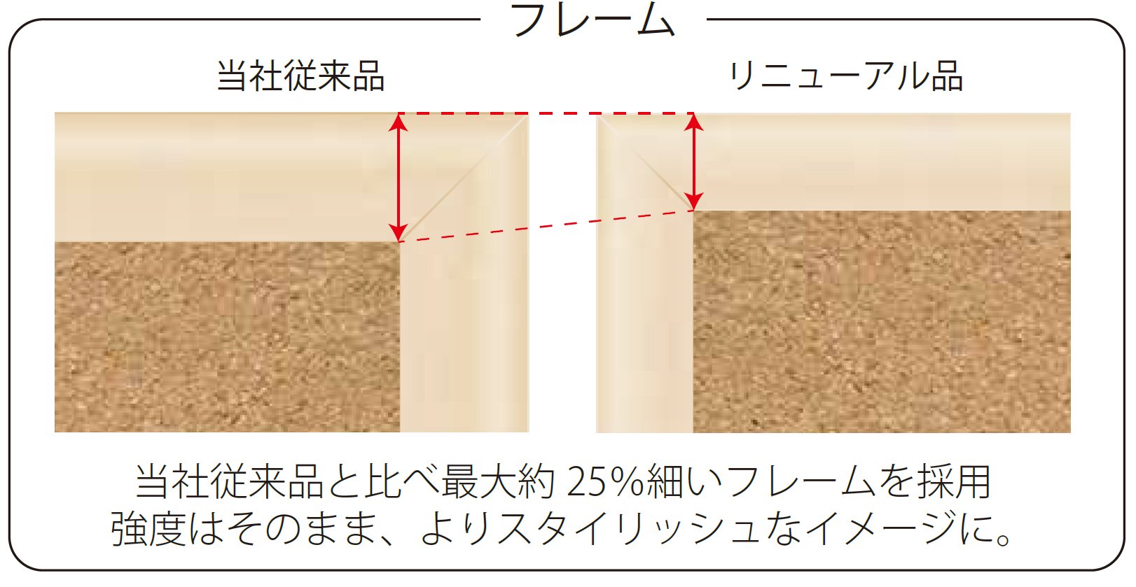 ● Adopted a frame that is about 25% thinner than our conventional products.