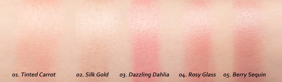 Pencil type blusher with clear color payoff for lustrous cheek.
