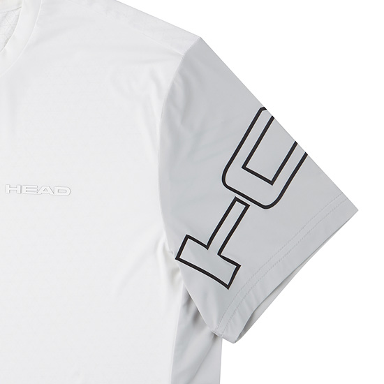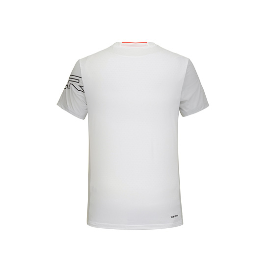 - 소매와 몸판의 컬러배색으로 슬림하고 스포티한 남성 반팔 티셔츠.