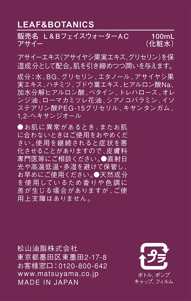 Leaf & Botanikusu Face Water Acai (100mL) / L & B (Leaf & Botanikusu)