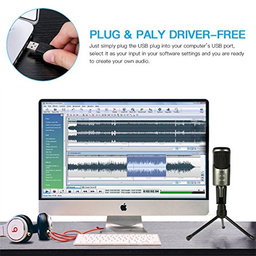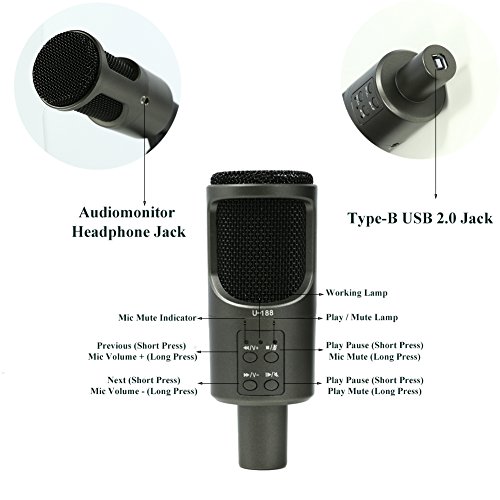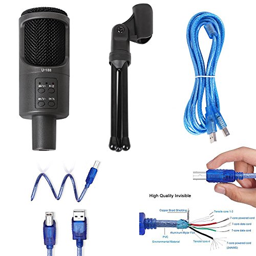 ✔Professional Condenser Microphone: Built-in noise cancellation professional audio decoder chip with USB2.0, Performance 16 bit audio DAC with earphone buffer [The USB cord(4.3ft)]
