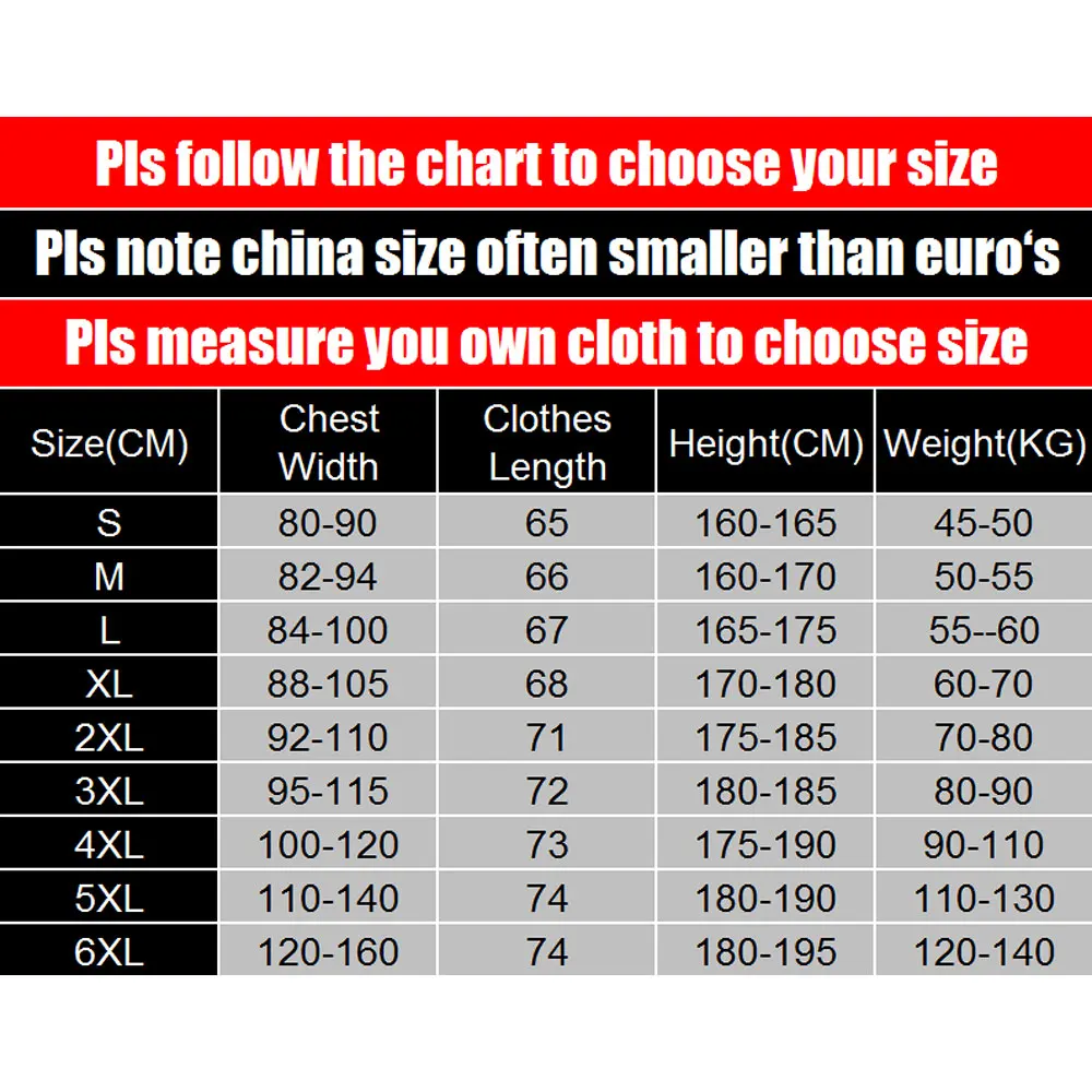 Size:Asian size S M L XL 2XL 3XL 4XL 5XL 6XL