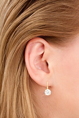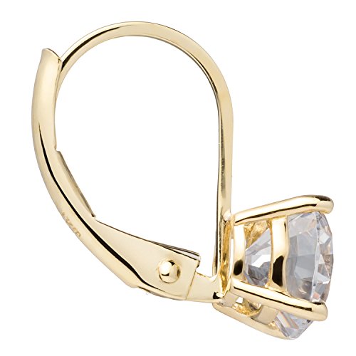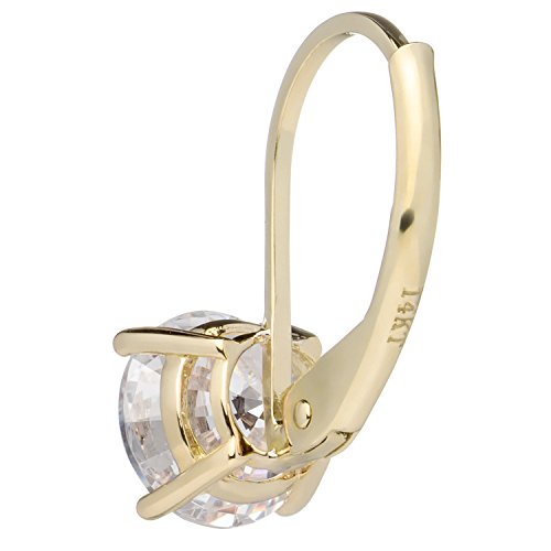 A gorgeous pair of lever back earrings featuring two brilliant round cut cubic zirconia (CZ) stones totaling 1.8 carats (.90 carat each earring) measuring 6.5mm diameter. Top Quality Grade AAAAA CZs look just like real diamonds that cost thousands of dollars. They are professionally set in a heavy basket setting with secure lever-back fastenings, all crafted from solid 14K yellow gold, with no other metals mixed (not plated or filled). This beautiful pair of earrings is elegantly presented in a deluxe black velvet box. They will make a perfect gift for a loved one, or for yourself!