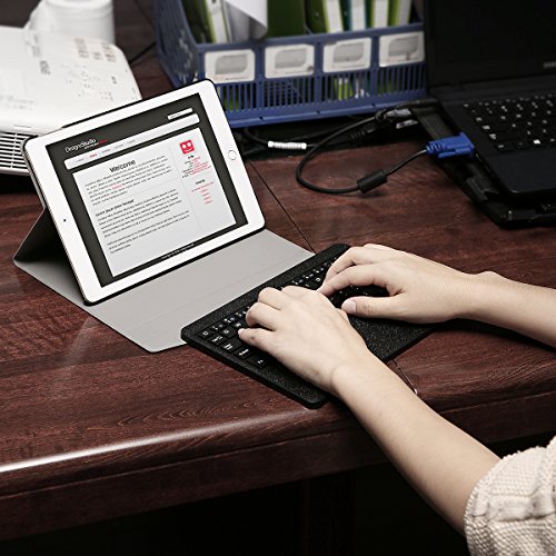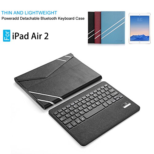 Poweradd Bluetooth Keyboard Case. Perfect 2 in 1 - Less is more Ultrathin folio PU leather case and magnetically detachable keyboard combined perfectly, with the compact folding size of 9.52 * 7.08 * 0.75 inches (iPad Air 2 in the case), it's easy to carry on the go. While the keyboard is magnetically attached, easily pull it off of the case, set up the screen and keyboard just how you like it.