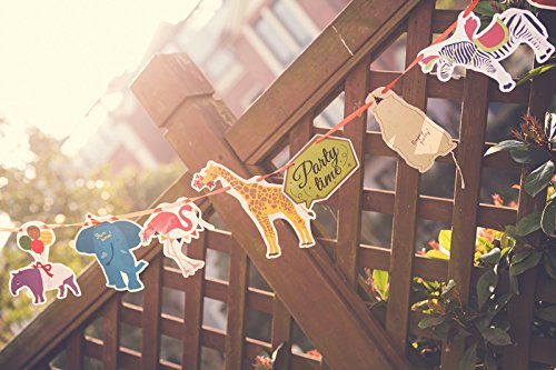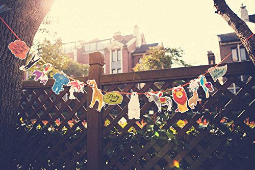 -. Feature : Size: Approx. 8.7x 6.3 inches (the distance between two flags can be adjusted freely) / Package: 1 string and 1 set of animal banner which includes 10 animal flags and 3 slogan flags. / The party banners are made of paper and easy to assemble, just string each flags together with the string included and adjust distance between two flags. / The anmial flags and slogan flags can be used together or separately for different events, such as wedding, birthday, baby shower, or animal themed party. / The animal theme banner is cute wedding, birthday, baby shower, graduation party decorations and kindergarten decorations.
