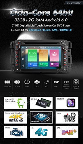 XTRONS 7 Inch Android 6.0 Octa-Core Capacitive Touch Screen Car Stereo Radio DVD Player GPS CANbus Screen Mirroring Function OBD2 Tire Pressure Monitoring for GMC Chevrolet