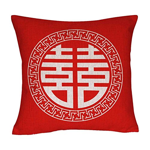 DECOPOW Double Happiness Pillow Cover,Cotton Linen Decorative Throw Pillow Case 18 "X18 "