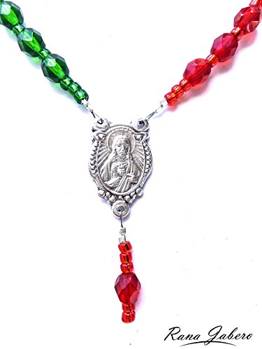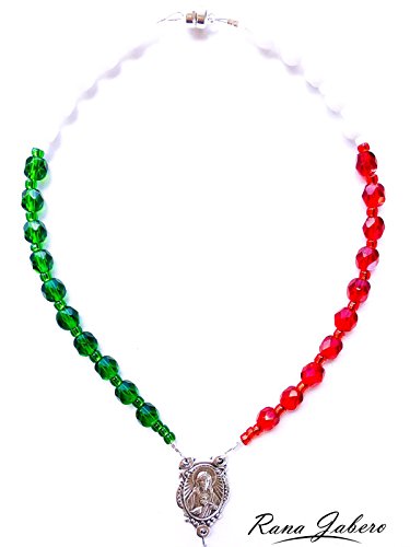 It features 6mm glass beads in white, red and green along with silver accents and a magnetic clasp, so that it's very easy to attach and remove.