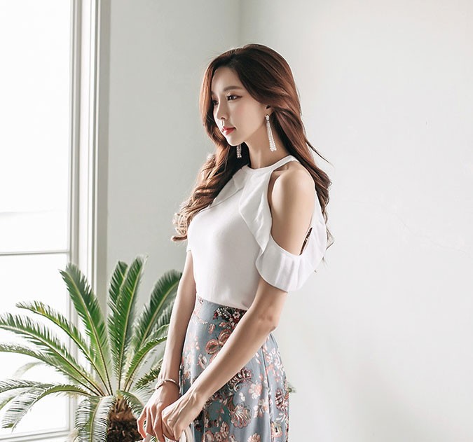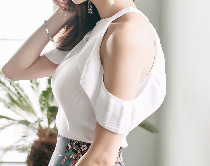 商品名:ブラウス プルオーバー オフショルダー 無地