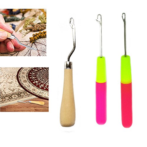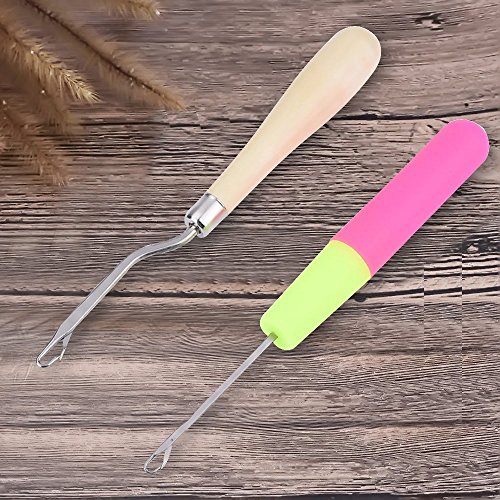 BronaGrand Wooden Bent Latch Hook Tool and Plastic Latch Hook Crochet Needle, Set of 3