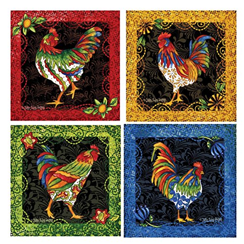 Thirstystone Stoneware Coaster Set, Rooster Flourish