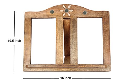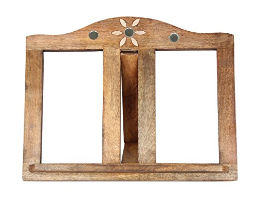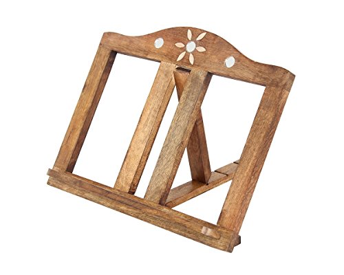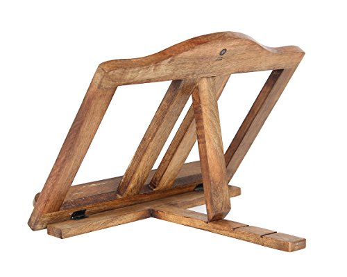 FEATURES: Artistically sculpted, this multipurpose stand can be placed anywhere on the tabletop. It holds the book in upright, open position at eyelevel. Frees up counter space and it is adjustable, foldable and portable. A charming cook book stand, beautifully crafted in a vintage style with floral motif detail. It is lacquered with ecological wood stain.