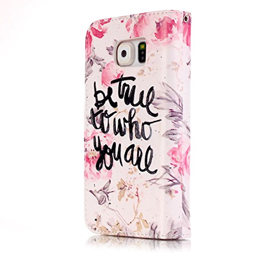 S6 Case,LittleMax Leather Wallet Case [Card Holder] Magnet Stand Case Soft TPU Protective Cover for Galaxy S6 [Screen Protector,Stylus,Cleaning Cloth]-Be True to Who You are