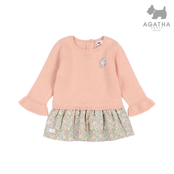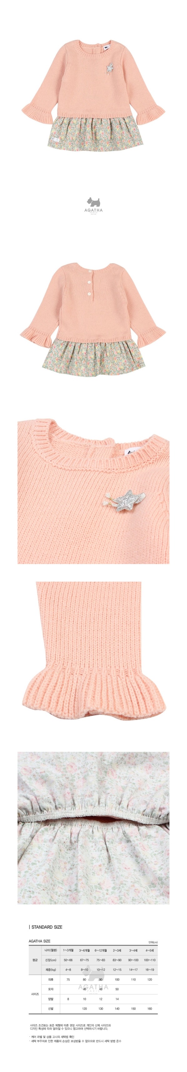 울이 함유된 니트와 플라워 패턴의 기모 프릴단이 믹스된 니트 롱티.
