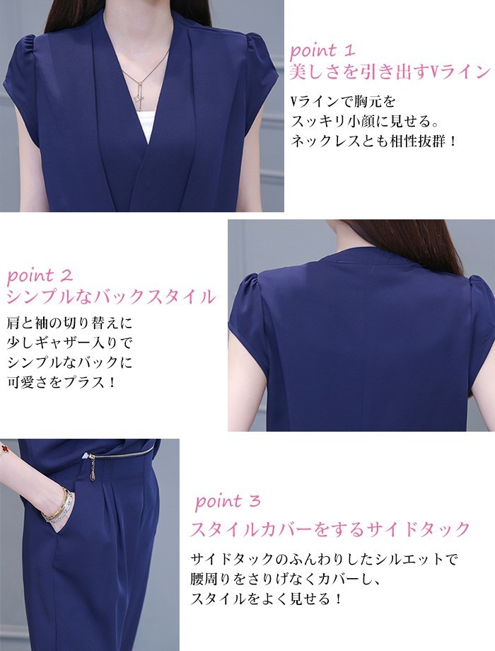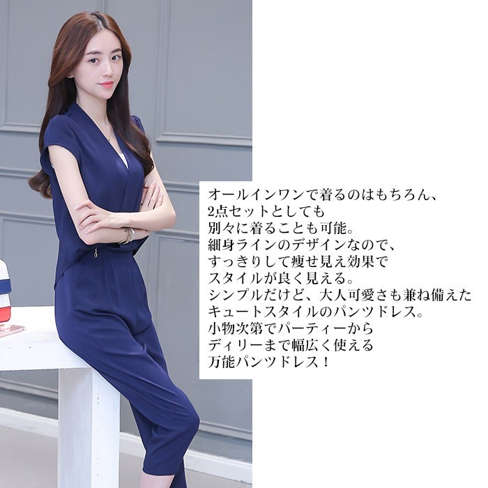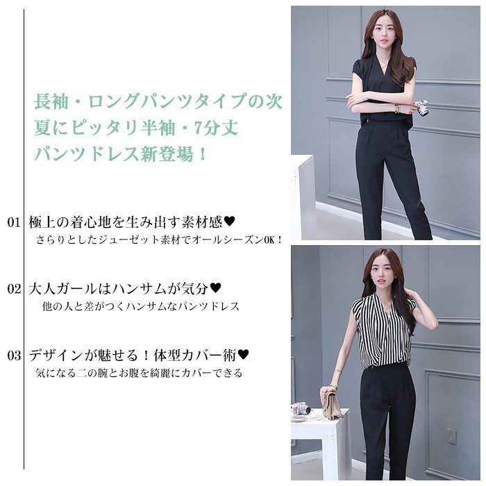 ●商品写真はできる限り実物の色に近づけるよう加工しておりますが、お客様が使用するパソコンのモニター設定や部屋の照明により多少、色の変化が感じられる場合がございます。素材:ポリエステル 生産国:中国伸縮性:なし生地の厚さ:普通カラー:黒 グレー 紺色 ストライプサイズ(cm):S:前/後ろ丈53/64cm/肩幅35cm/バスト86cm/ウエスト64cm/ヒップ106cm/内股下45cm/脇丈73cmM:前/後ろ丈54/65cm/肩幅36cm/バスト90cm/ウエスト68cm/ヒップ110cm/内股下46cm/脇丈74cmL:前/後ろ丈55/66cm/肩幅37cm/バスト94cm/ウエスト72cm/ヒップ114cm/内股下47cm/脇丈75cmXL:前/後ろ丈56/67cm/肩幅38cm/バスト98cm/ウエスト76cm/ヒップ118cm/内股下48cm/脇丈76cm2XL:前/後ろ丈57/68cm/肩幅39cm/バスト102cm/ウエスト80cm/ヒップ122cm/内股下49cm/脇丈77cm※サイズは人の手によって測っているため、1~3cmの誤差がある場合がございます。送料無料 パーティードレス フォーマルドレス パンツドレス パンツスーツ ロングドレス オールインワン 大きいサイズ 体型カバー 袖あり 半袖 お呼ばれ 二次会 謝恩会 食事会 演奏会 発表会 披露宴 カジュアル 成人式 春 夏 秋 冬