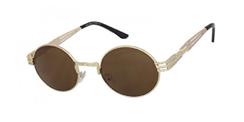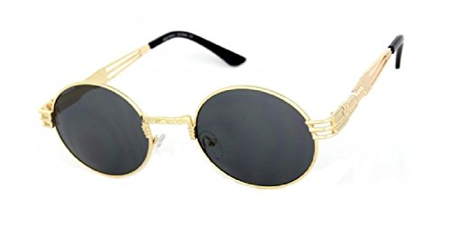 Round Classic Oval Luxury Steampunk Sunglasses (Metallic Gold Frame, Black)