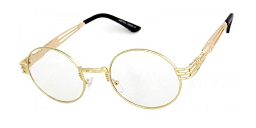 Circle / Oval Classic Luxury Steampunk Sunglasses by Dweebzilla. Design features round lenses on a John Lennon style metallic designer frame. A true homage to the Fashion shades seen worn by rappers of the 80s & 90s hip hop music scene.
