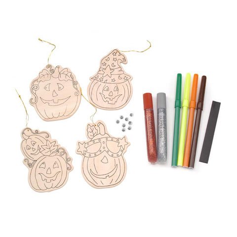 - Feature : This package includes: 4 Markers, 4 Wood Ornaments, 8 Wiggly Eyes, and 2 Glitter Pens / PLEASE NOTE: This package includes (4) Equally Assorted Pumpkin Wood Kits / Each pack makes 4 decorations / Makes for a great arts and crafts gift to friends and family