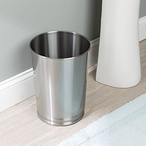 mDesign Metal Wastebasket Trash Can for Bathroom, Office, Kitchen - Tall, Brushed Stainless Steel