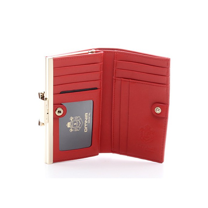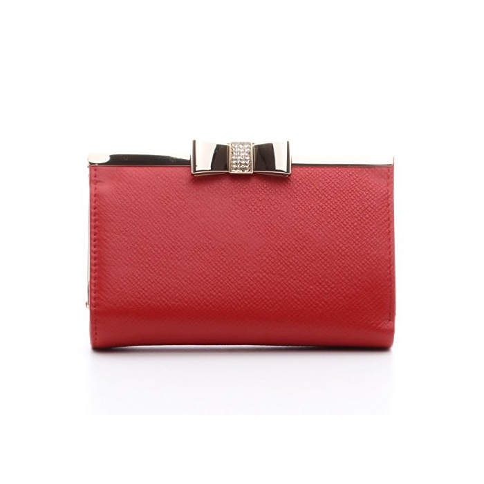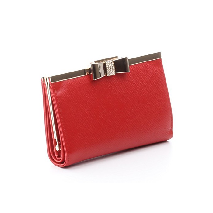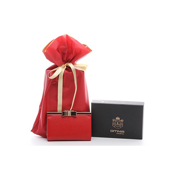 【세트품】OMNIA 옴니《아》 리나 리본2단 접이 지갑 물림쇠가 달린 동전지갑 가죽 지갑 레이디스 씌우 하 있 # 반 접기 omnia crystal(지갑,랩핑대) (레드)