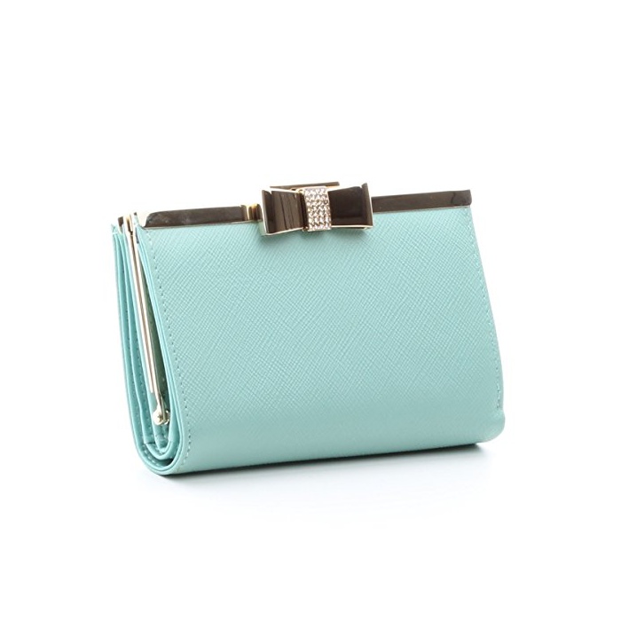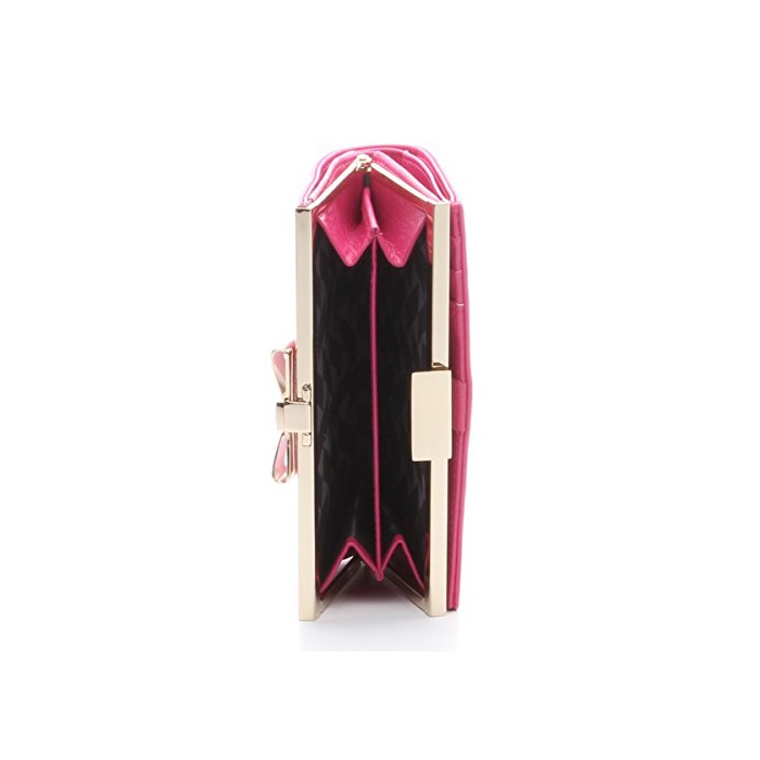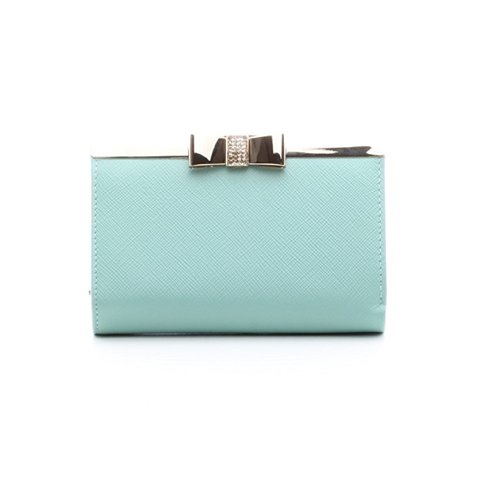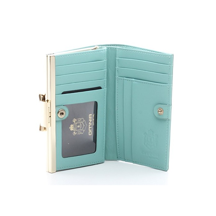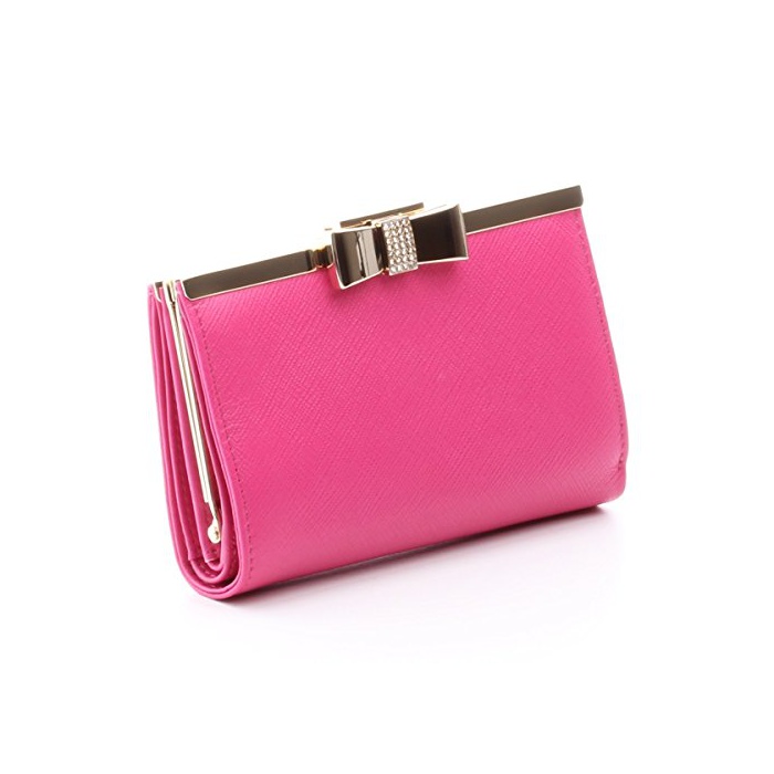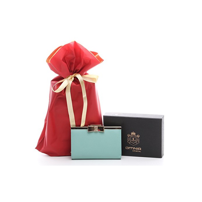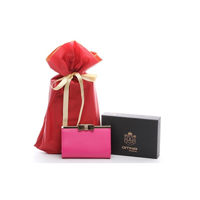 원본상품명: 【セット品】OMNIA オムニア リナ リボン2つ折り 財布 がま口 本革 サイフ レディス かぶせ さいふ 二つ折り omnia crystal(財布、ラッピング袋)