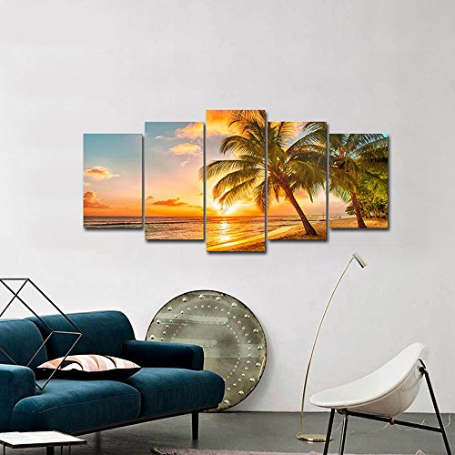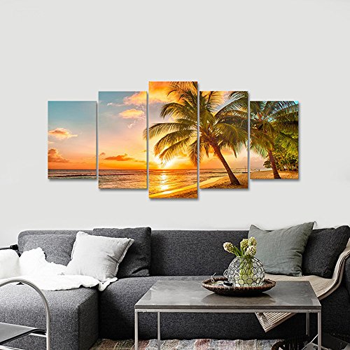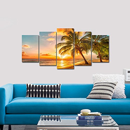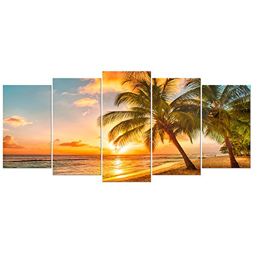 -. Title : Wieco Art - Cozy Sea Modern Seascape 5 Panels Giclee Canvas P.R.Ints Artwork Sea Beach Pictures Paintings on Canvas Wall Art for Living Room Wall Décor
