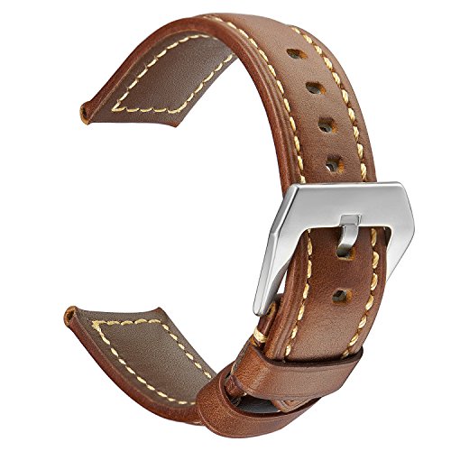 -. Title : Quick Release Leather Smart Watch Band, Pluwatch Genuine Leather Replacement Watch Strap with Stainless Metal Clasp 22mm