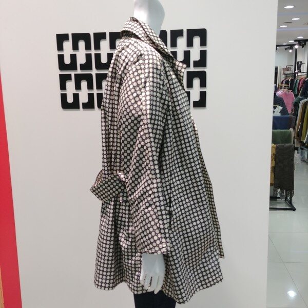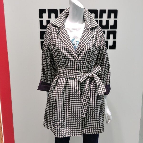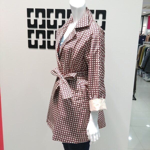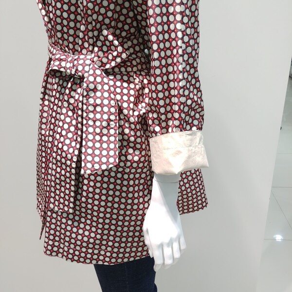 허벅지 중간 기장으로 케쥬얼 하면서도 여성스러운 도트 패턴의 바바리 입니다 간절기에 입기 좋은 두께로 멋스럽게 코디하기 좋습니다 A라인으로 밑단이 퍼지며 체형커버도 가능하고 러블리한 느낌으로 연출하기 좋습니다 ★31 1/4 인치기장 입니다★