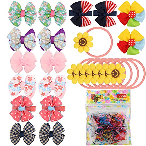 16 PCS Baby Girls Hair Bows Clips Hairpin Barrettes,100 PCS Multi Color Hair Holder Hair Tie Elastic Rubber Bands for Baby Girls, 8 PCS Cute Girls Sunflower...