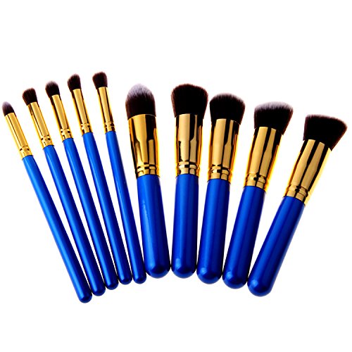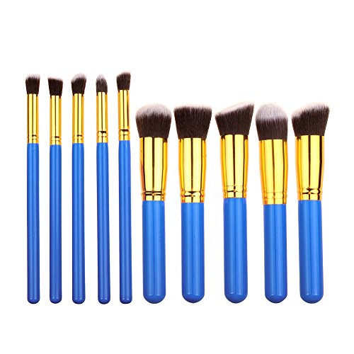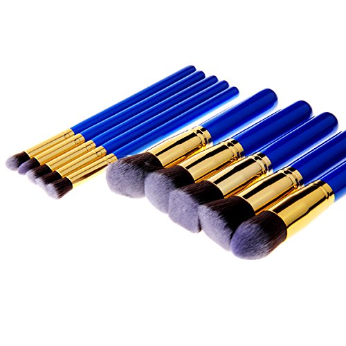 메이크업 브러쉬 (노즈라소도품) 유연함(부드러움)인지(든가) 화장 브러시 세트 고품질 상급자용 메이크 브러시 귀여운 전용 화장 용구 10개 세트 (블루+골든)