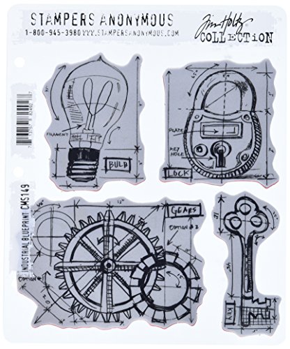 Stampers Anonymous Tim Holtz Cling Rubber Stamp Set, 7 by 8.5-Inch, Industrial Blueprint