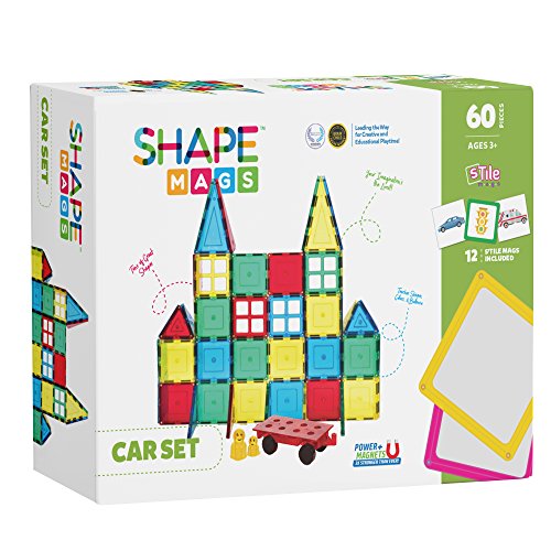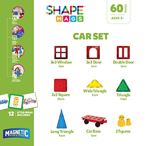 Building with Magnetic tiles has never been so Much fun In this starter set you are getting so much more pieces for so much less $. you are getting 24 pieces 3x3'' squares 4 pieces 3x3'' windows 8 pieces 5.5'' long triangle 12 pieces short triangles. 8 pieces Wide triangle (half square) 1 wheel Base 1 3x3 Arch Door 2 3x3 Double Door 1Feature