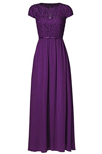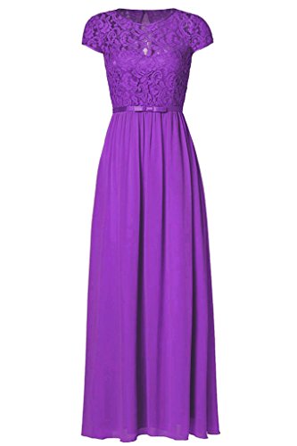 Flroal Lace and Chiffon,Cap Sleeves ,Scoop Neck,Bow Detail