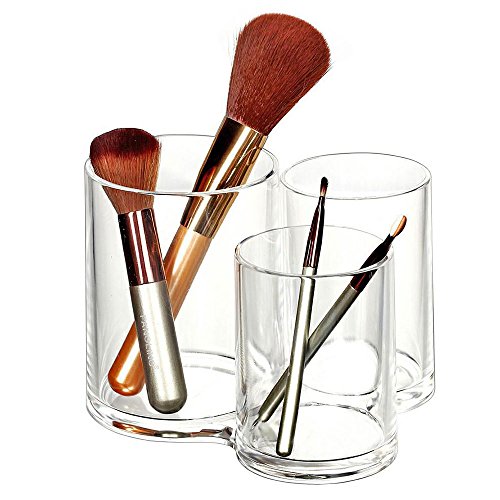 - MULTI-PURPOSE USE: Store large and small makeup brushes, eyeliners, makeup pads, and other makeup accessories in this clear large capacity container.