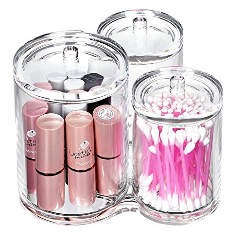 - Sturdy, acrylic holder conveniently stores cotton balls, cotton swabs, makeup pads, makeup accessories, and many other items, Made from the highest quality shatter-resistant acrylic. Safer and better alternative to glass in the bathroom!