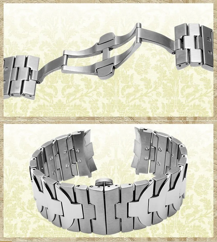 JAWODER 시계 밴드 24 미리메터 고품질의 스테인레스 스틸 시계 스트랩 링크 팔찌 액세서리 실버 어댑터 LUMINORPAM 00161