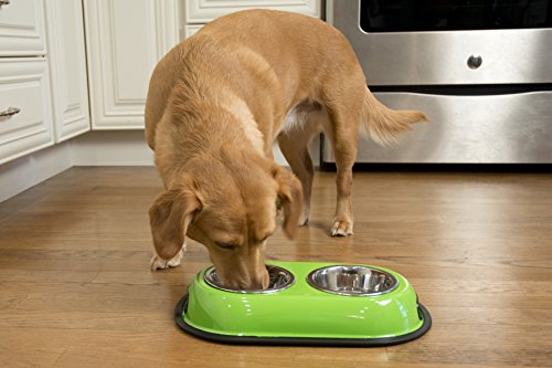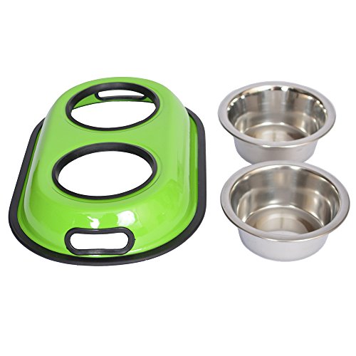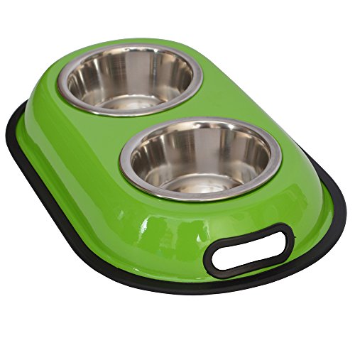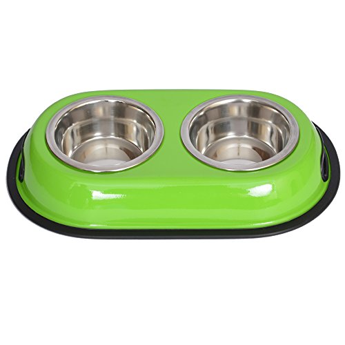 (Iconic Pet)/Pet Supplies/Feeding Watering Supplies/DIRECT FROM USA/Iconic Pet 4-Cup Color Splash Stainless Steel Double Diner for Dog/Cat, 32-Ounce, Green