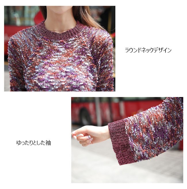 | 商品名 | 秋冬ニット ラメニット ニットブラウス ニットセーター 美ゆるニット レディース ラメ入り 透け感 長袖 ラウンドネック オシャレ カジュアル 201秋冬新作 |