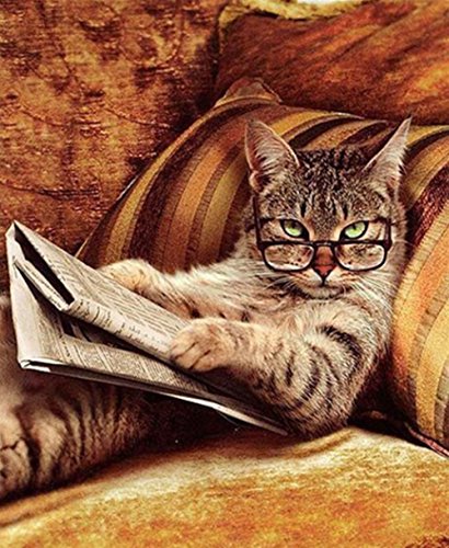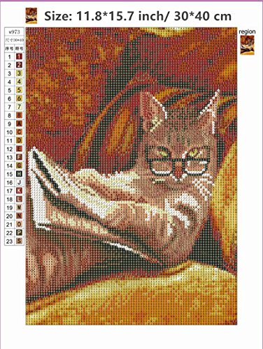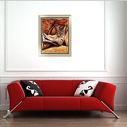 DIY 5D Diamond Painting by Number Kit, Full Drill Reading Book Cat Crystal Rhinestone Embroidery Cross Stitch Ornaments Arts Craft Canvas Wall Decor