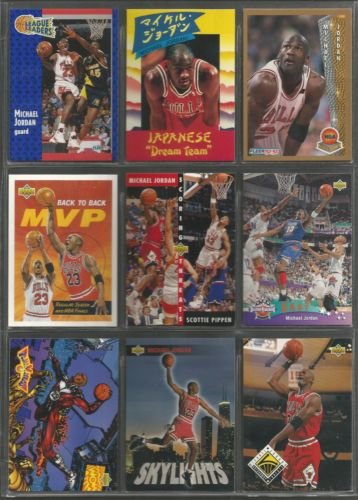Michael Jordan MJ (10) Mint Basketball Cards - Chicago Bulls Assorted NBA Trading Cards - MVP # 23. Each card comes individually protected in its own soft and hard plastic case. - PERFECT PARTY FAVOR or GIFT for NBA Collector or Fanatic Basketball Fan ! -