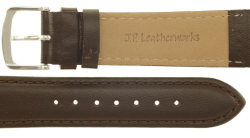 - Title : Mens Padded Genuine Leather Watchband Brown Long Length 18mm Watch Band - by JP Leatherworks