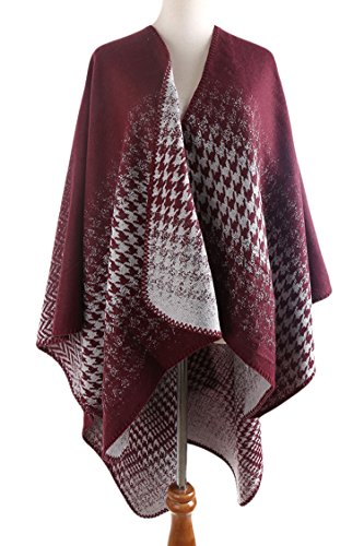 Product DescriptionVamJump Women Winter Houndstooth Oversized Poncho Cape Shawl Cardigan Jacket0