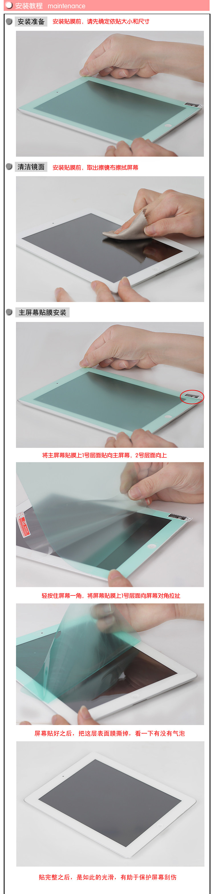 5.不因时间长而变质,不会像其它粘贴留下腐蚀性胶粘剂在屏幕表面,安全可靠。可重复粘贴,不留任何痕