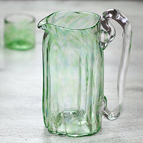 NOVICA Hand Blown Green Glass Pitcher, 21 oz. 'Green Mist'