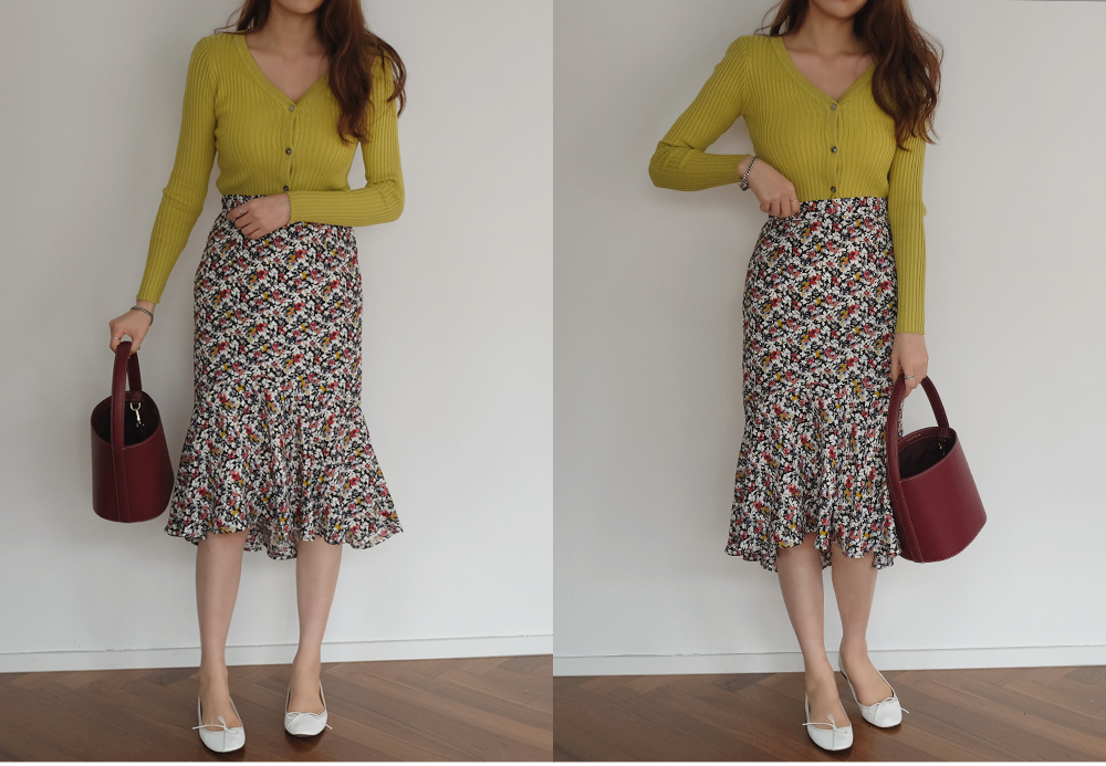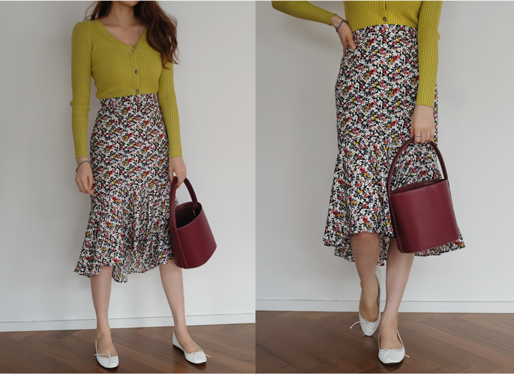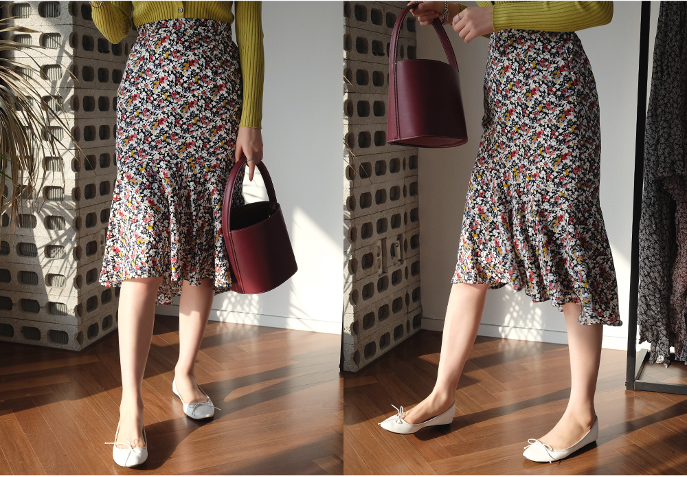 과하지않은 플라워패턴의 머메이드 프릴 스커트 소개해드려요-