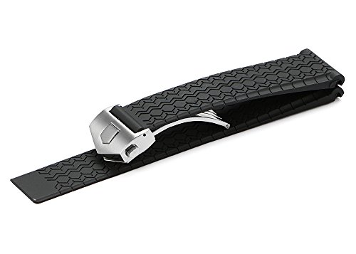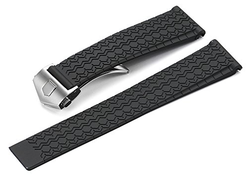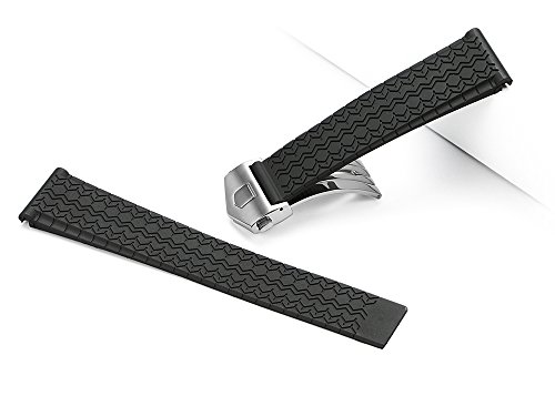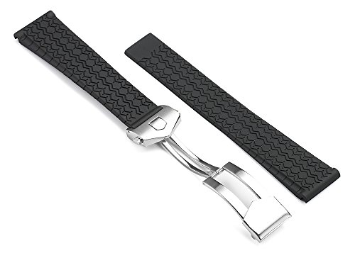 -. Title : iStrap 22mm Black Rubber Strap Tyre Grain TAG HEUER Style Watch Band With Steel Deployment Clasp